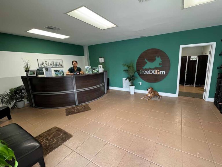 “My pup loves FreeDOGm! He regularly comes for daycare and rushes through their doors without looking back. The employees are great with him and send photos and videos of him swimming, playing fetch, socializing with friends, and receiving belly rubs! Where else can your pup swim in a pool tailor made for them and enjoy SPACIOUS indoor and outdoor parks. I highly recommend FreeDOGm – it’s a dog’s paradise!”